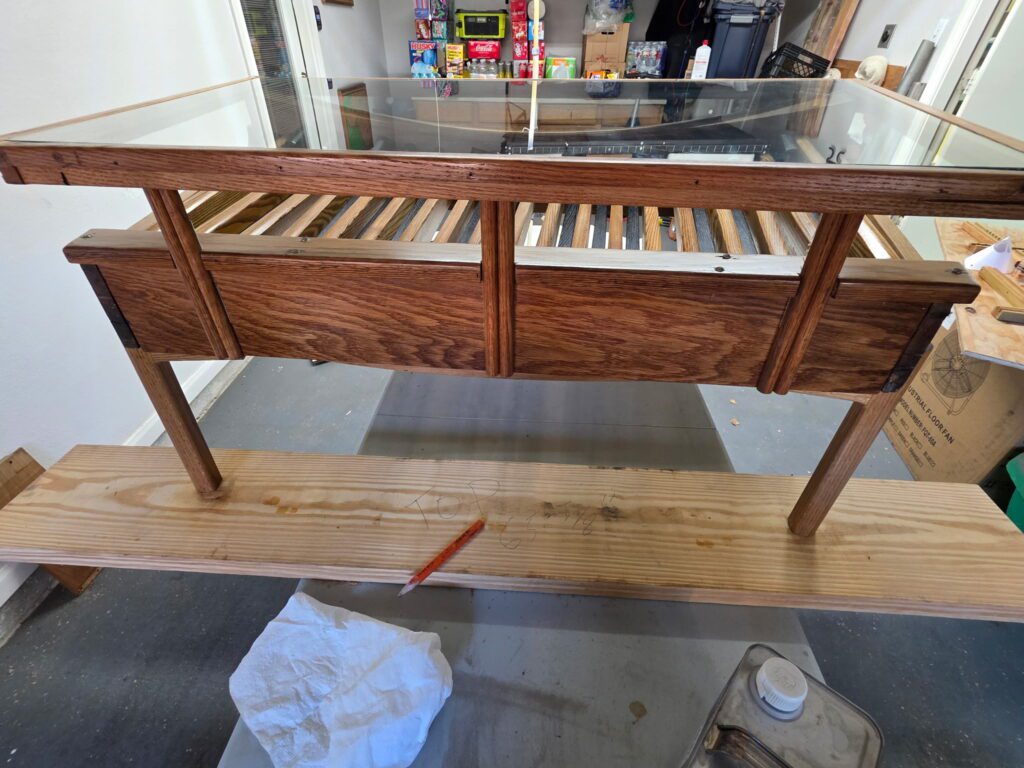 The organ, once lost to the floods of Hurricane Ike, has been beautifully reborn as this one-of-a-kind heirloom. The table’s frame and supports are made from the organ’s original case and roll-top cover, with laminated glass showcasing its craftsmanship.
